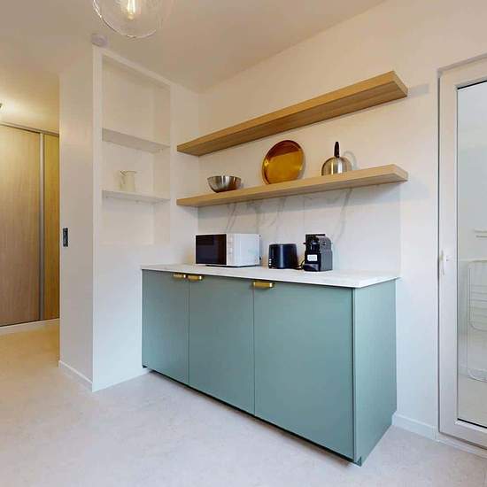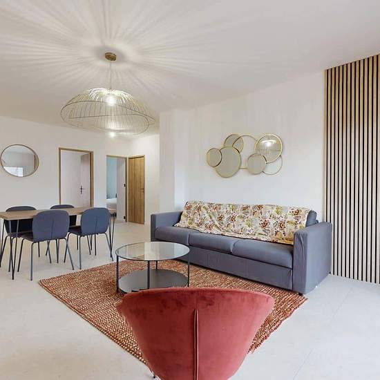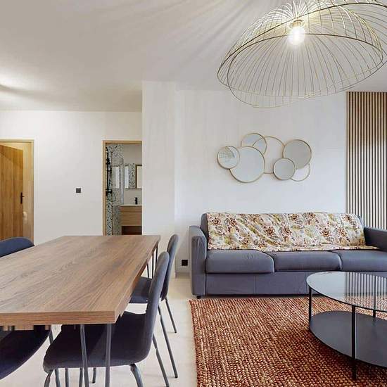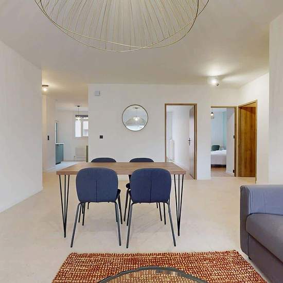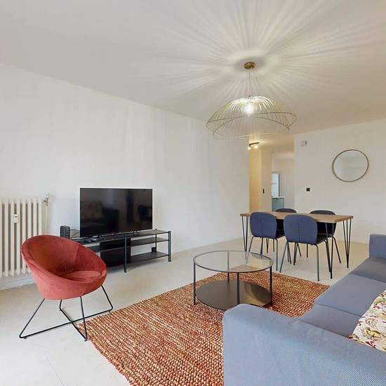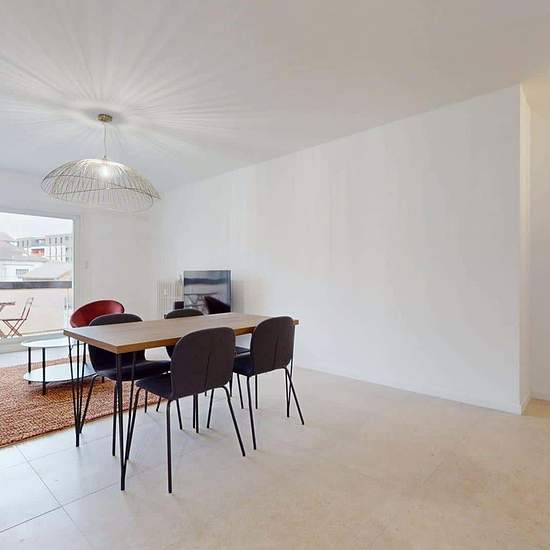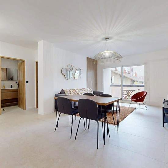 Oqoro vous présente cette colocation de 3 chambres de 88 m² au 10 Rue Du Mont-Blanc à Annemasse (74100). Bienvenue à la Casa Amélia ! LA CHAMBRE La chambre est équipée d'un lit double, d'une table de nuit, d'une penderie et d'un bureau avec une chaise. LES ESPACES COMMUNS La pièce de vie est meublée avec un canapé, une table basse, un fauteuil, un meuble TV ainsi qu'une télévision et une table à manger avec des chaises. Un balcon dessert cette pièce, ce qui vous permettra de gagner en confort et en espace. La cuisine, attenante au salon, e...