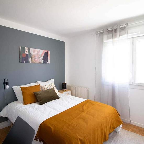 [FR] Cette agréable chambre de 13m² vous est proposée entièrement meublée dans la belle ville de Grenoble. Louée toute équipée, cette confortable chambre, qui bénéficie d’un balcon, se compose d’un lit double (140x190), d'une table et lampe de chevet, de plusieurs espaces de rangements, d’une belle penderie et surtout d’un bel espace de travail, parfait pour le télétravail et les études. La salle de bain de l’appartement comporte une douche et une machine à laver/sèche-linge. Le WC indépendant permet aux colivers de garder leur intimité. Pou...