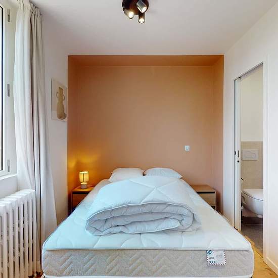 This comfy and minimalist room is perfect for one person. Enjoy quiet times to chill or work. Plus, you will have your own private bathroom : so take as much time as you want in the shower and sing all your favorite songs out loud. Hi, I'm Atwood ! I'm a newly renovated residence in Montreuil. A 5-minute walk from downtown Montreuil, I am very (very) accessible by metro line 9 (Stop : Mairie de Montreuil). With my 260 m2, it is enough to accommodate the full and exciting lives of 12 happy tenants. My plan to treat you? Living room, kitchen, ...