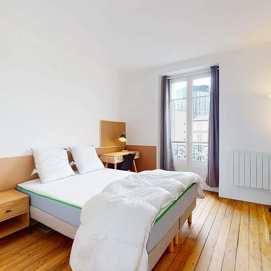 This spacious and comfortable room has been designed for you dear roomie! Practical and functional, the room is equipped with high quality bedding (140x200cm), a beautiful wardrobe, a night table and a true office space for your exams or your home office days! All of this in a cheerful and warm atmosphere. In addition, you have access to a shared bathroom. Beautiful flatshare in Paris ! Discover Paris Garibaldi, our cosy and freshly renovated contemporary-style apartment. Close to local shops and restaurants, it is easily accessible by M10. ...