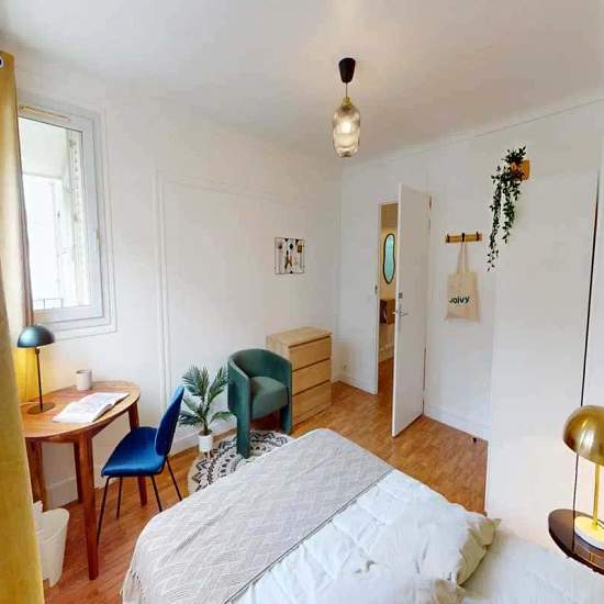 Inquilini all'interno della struttura / Tenants inside the building: 2) Female, Student, 23 3) Male, Worker, 26 4) Male, Student, 29 EN This lovely private bedroom in a fully equipped, furnished and all-inclusive flatshare in Paris is a mix of comfort and design. It has got household furnishings, including a bed with pillows and duvet What is missing is your things to feel at home! The room can be locked if you need intimacy. The flatshare can be found in the Batignolles neighborhood, in the heart of Paris. Plenty of shops, public transports...