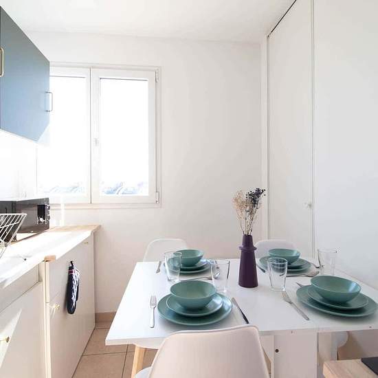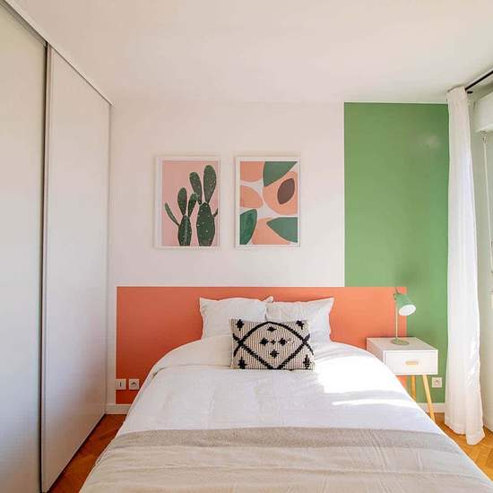 [FR] Découvrez une belle chambre de 13m² à Saint-Denis. Louée dans un grand appartement en duplex meublé de 96 m² au 6ème étage d’une résidence, sa décoration aux tonalités ocres vous transportera direction un lieu ensoleillé et naturel. Dans cette chambre se trouvent un espace nuit avec lit double, table et lampe de chevet, complété par un bel espace de travail qui comprend un bureau et ses accessoires essentiels (étagères, chaise, lampe). La chambre compte aussi de beaux et grands espaces de rangement pour que vous puissiez y déposer toute...