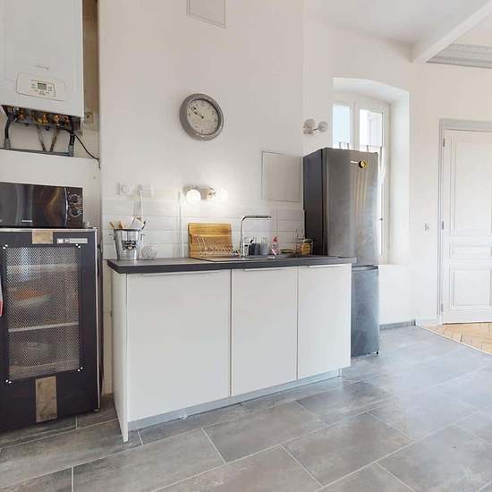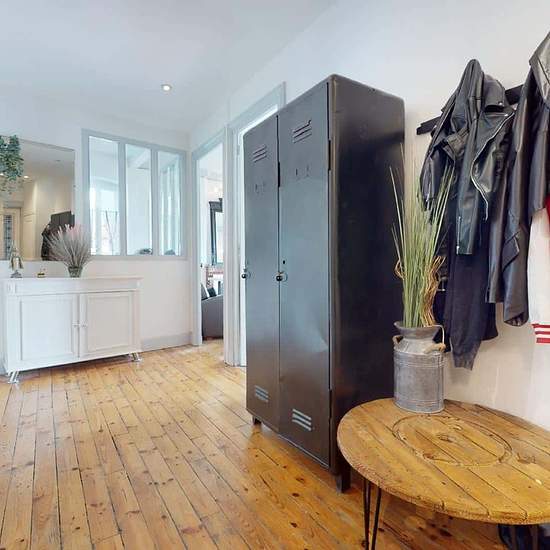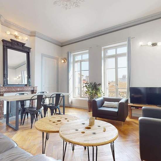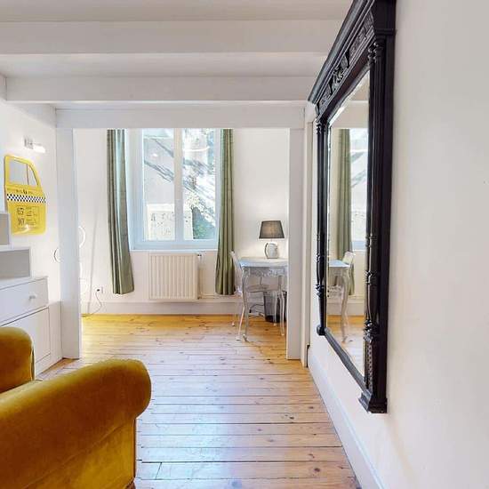 TRÈS GRAND APPARTEMENT 4 PIÈCES Proche de l'arrêt de tramway PEUPLE GAMBETTA (ligne T3), au 12 Rue Du Théâtre à Saint-Étienne (42000), venez découvrir cette colocation de 3 chambres de 101 m². LA CHAMBRE La chambre 1 se compose d'un lit double en mezzanine, d'une table de bureau accompagnée de sa chaise et de sa lampe, et de placards de rangement. LES ESPACES COMMUNS L’appartement se compose de trois grandes chambres, d’un spacieux séjour et d’une cuisine très bien équipée (Four, micro-ondes, plaques de cuisson, frigidaire, hotte, lave-vai...