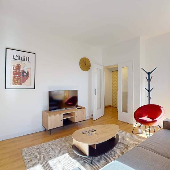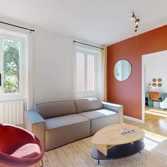 This spacious and comfortable room has been designed for you dear roomie! Practical and functional, the room is equipped with high quality bedding (140x200cm), a beautiful wardrobe, a night table and a true office space for your exams or your home office days! All of this in a cheerful and warm atmosphere. In addition, you have access to a shared bathroom. Beautiful flatshare in Villeurbanne ! Discover Villeurbanne Convention, our cosy and freshly renovated contemporary-style apartment. Close to local shops and restaurants, it is easily acce...