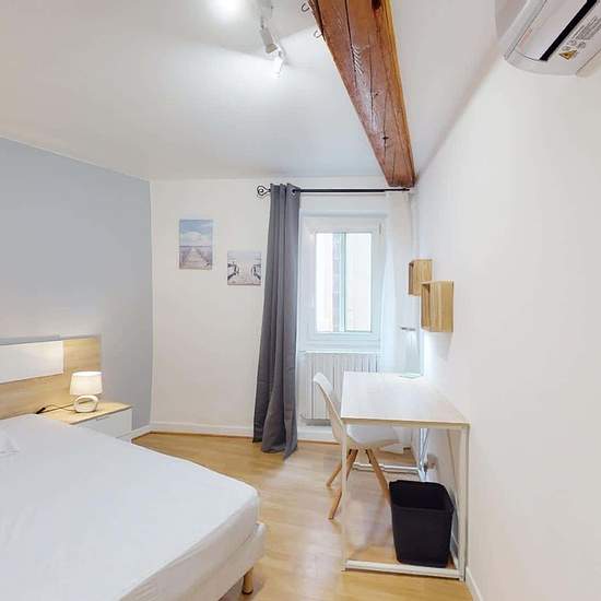 MAISON 6 PIÈCES AVEC TERRASSEVenez découvrir cette colocation de 5 chambres de 130 m² localisée au 2 Rue Saint-Vincent De Paul à Clermont-Ferrand (63000). LA CHAMBRECette chambre, située au 2e étage, a une superficie de 14,59m2. Elle est composée d'un lit double, de deux tables de nuit, d'un grand placard intégré avec miroir et d'un bureau. LES ESPACES COMMUNSCette colocation se compose de 3 étages repartis comme suit :au 1er étage : une chambre, un salon (avec canapé d'angle, tables basses, TV, fauteuil et cheminée non fonctionnelle) et une...