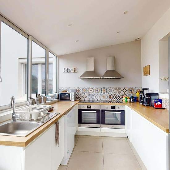 MAISON 8 PIÈCES AVEC BALCON Oqoro vous propose cette colocation de 8 chambres de 170 m² localisée au 3 Rue De Bretagne dans la commune d'Orvault (44700). LA CHAMBRE La chambre est équipée d'un bureau, d'un canapé, d'un lit, d'une penderie et d'un placard. LES ESPACES COMMUNS La maison de 8 pièces comporte un salon avec un canapé, un fauteuil ainsi qu'une télévision, sept chambres et une cuisine équipée d'un four, d'un lave-vaisselle, d'un micro-ondes ainsi que d'une plaque de cuisson. Cette maison bénéficie d'un chauffage collectif. Elle e...
