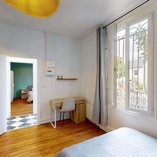 Spacest vous présente cette colocation de 8 chambres située 103 avenue Henri Barbusse au Blanc-Mesnil. LE QUARTIERLa maison se situe dans une rue calme et pavillonnaire. Une boulangerie ainsi qu'une supérette se trouvent au pied du logement.En moins de 5 minutes en voiture (à 1,7 km), vous aurez accès à toutes les commodités nécessaires grâce au Centre Commercial Plein Air (notamment un supermarché E. Leclerc).Vous trouverez également dans les environs l'Hôpital de la Seine-Saint-Denis, un complexe sportif, etc.Coté transport ; les bus 148, ...