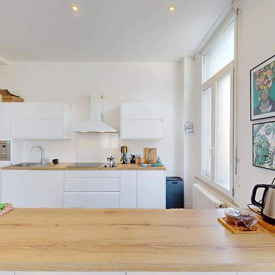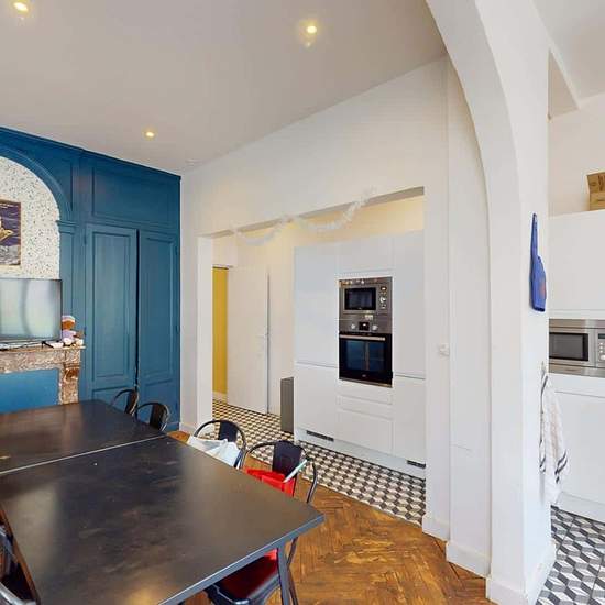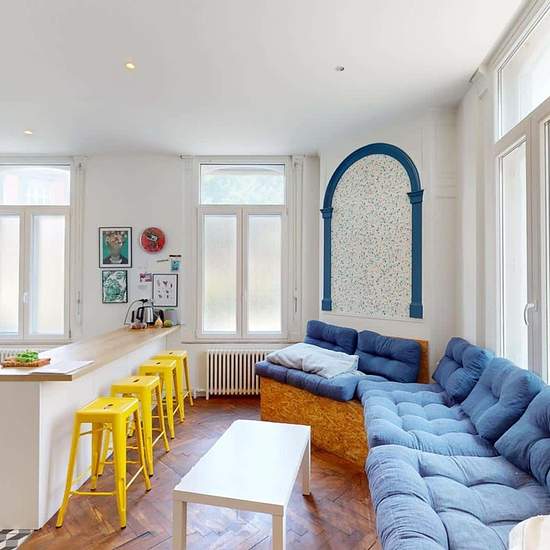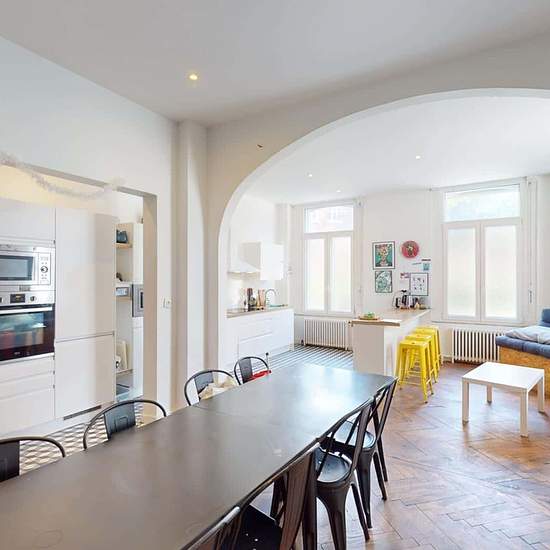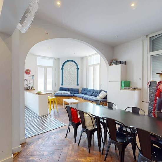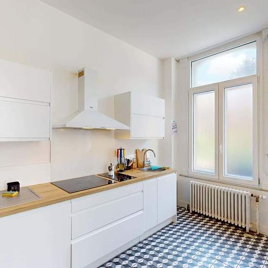 OQORO vous présente cette superbe maison en co-living de 258 M2 située au 152 rue de Douai à Lille. LA CHAMBRE Cette chambre est aménagée d'un lit double, de deux tables de chevet, d'un miroir, d'un bureau, d'une TV, de rangements ainsi que d'une salle d'eau avec cabine de douche, meuble vasque, sèche-serviette, miroir et WC. Chambre ""prête à vivre"", le locataire n'a plus qu'à poser ses valises dans cet espace de standing. LES ESPACES COMMUNS Cette maison s'ouvre sur une entrée avec rangements desservant un grand espace de vie avec cuisi...