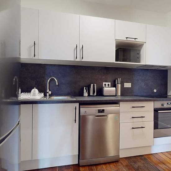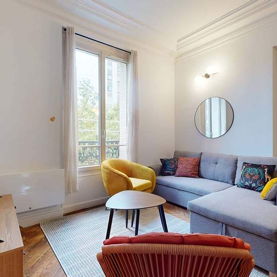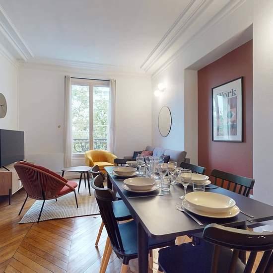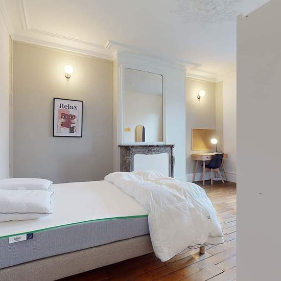 This spacious and comfortable room has been designed for you dear roomie! Practical and functional, the room is equipped with high quality bedding (140x200cm), a beautiful wardrobe, a night table and a true office space for your exams or your home office days! All of this in a cheerful and warm atmosphere. In addition, you have access to a shared bathroom. Beautiful flatshare in Paris ! Discover Paris Jean Jaurès, our cosy and freshly renovated contemporary-style apartment. Close to local shops and restaurants, it is easily accessible by M5,...