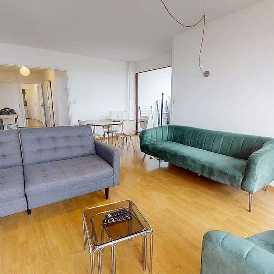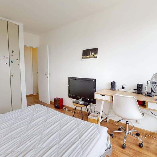APPARTEMENT 5 PIÈCES AVEC BALCON Venez découvrir cette colocation de 4 chambres de 105 m² située au 2 Passage De L'europe dans la commune de La Rochelle (17000). LA CHAMBRE Cette chambre dispose d'un canapé convertible, un bureau avec chaise et une table basse. Cette chambre dispose d'un accès direct sur un balcon avec une vue dégagée. LES ESPACES COMMUNS Cette colocation de quatre chambres s'ouvre sur une grande pièce de vie avec un accès au balcon. Cette pièce est aménagée d'un buffet, une grande table avec quatre chaises, plusieurs éten...