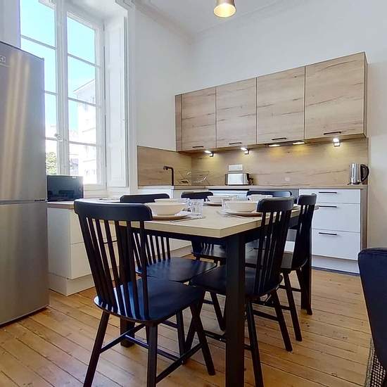 This spacious and comfortable room has been designed for you dear roomie! Practical and functional, the room is equipped with high quality bedding (140x200cm), a beautiful wardrobe, a night table and a true office space for your exams or your home office days! All of this in a cheerful and warm atmosphere. In addition, you have access to a shared bathroom. Beautiful flatshare in Nantes ! Discover Nantes Alger, our cosy and freshly renovated contemporary-style apartment. Close to local shops and restaurants, it is easily accessible by tra...