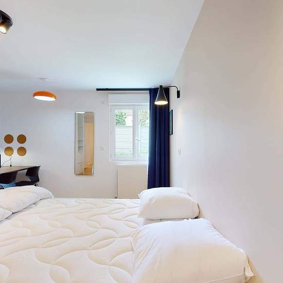 Share with your loved one this beautiful room designed for two people. You will have all the privacy you need as you will enjoy your own private bathroom. Please be free to sing as loud as possible (but please don't make it rain...) - Beautiful home in Nanterre! Discover Whitney, our modern and newly renovated home located just a 10-minute bus ride from Université Paris Nanterre! With a surface area of 247 sq.m. spread over 3 floors, it's perfect for accommodating within its 13 private units, the full and pulsating lives of happy tenants! On...