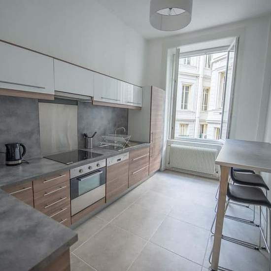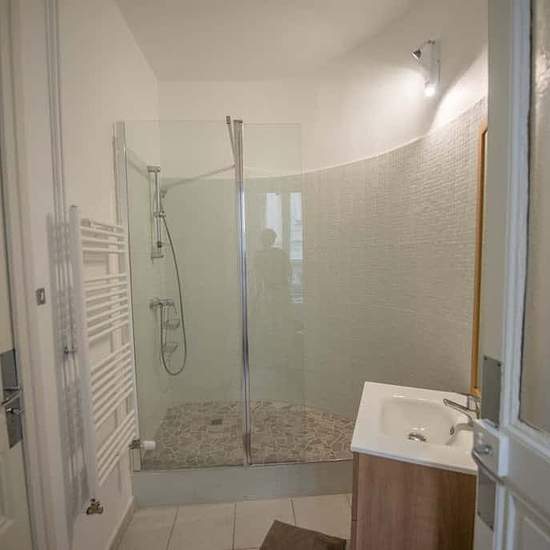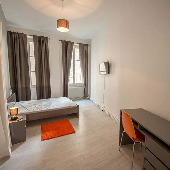 GRAND APPARTEMENT 3 PIÈCES Oqoro vous propose cette colocation de 3 chambres de 85 m² située au 5 Rue Saint-Jean à Saint-Étienne (42000). Les parties communes se composent d’une cuisine moderne entièrement équipée avec tout le nécessaire : vaisselle, micro-ondes, four, machine à laver, lave-vaisselle… Une salle de bain avec grande douche, meuble vasque et WC vient compléter ce logement. Coup de coeur pour cette colocation. Cette chambre tout comme les autres chambres comporte un lit double, un bureau, une chaise, des rangements, un TV privat...