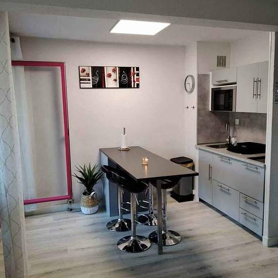 Nous louons notre appartement dans une résidence sécurisée avec une piscine adulte et une pour enfants. Vous disposez d'une cuisine tout équipé avec frigo, congélateur, lave vaisselle, micro onde et plaque de cuisson à induction. Un coin salon avec canapé lit et télévision table basse et armoire pour ranger vos affaires personnel. De plus vous disposer d'une loggia avec clic clac ainsi qu'une grande terrasse et salon de jardin avec barbecue électrique et plancha. La salle de bain comprend une douche, WC et machine à laver. L'appartement se s...
