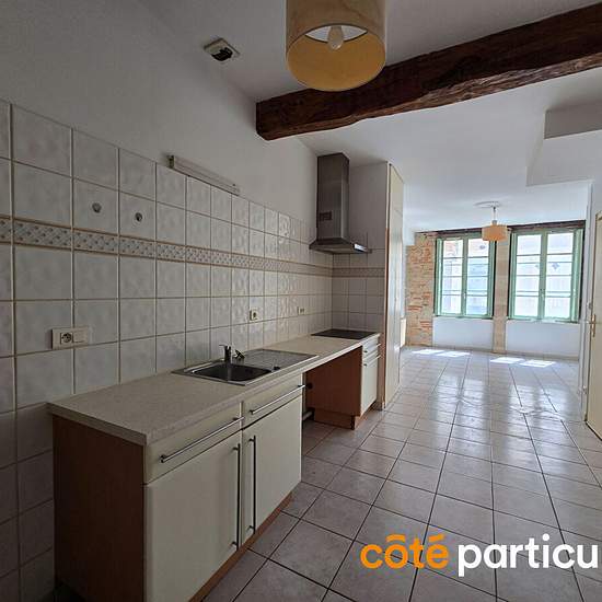 AGEN CENTRE VILLE. Au rez de chaussée d'un charmant immeuble de la Rue Voltaire, T2 Bis de 50 m². Grande pièce de vie de 32 m², chambre avec salle d'eau attenante, wc indépendant. Au sous sol, une cave. Disponibilité immédiate. Etat des lieux par huissier de justice. Loyer 495 euros mensuel eau et taxe d'enlèvement d'ordures ménagères comprises