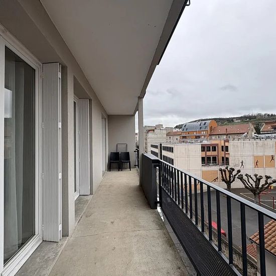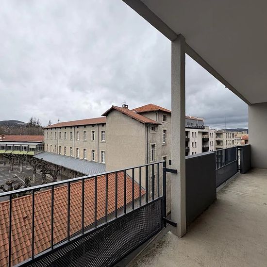 Appartement avec terrasse – 47m² REF 432 - Le Puy-en-Velay Situé au 4ᵉ étage d'une résidence calme et sécurisée avec ascenseur et interphone avec écran de visionnage, cet appartement lumineux offre un cadre de vie agréable. Il se compose d'une entrée avec placards de rangement, d'une belle pièce de vie salon/séjour baignée de lumière grâce à ses quatre portes-fenêtres, donnant toutes accès à un grand balcon/terrasse sans vis-à-vis avec vue dégagée. La cuisine est séparée et semi-équipée, comprenant un four, un micro-ondes, une plaque à indu...