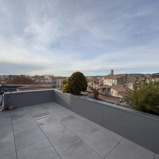 En plein coeur d'Aix en Provence, nous vous proposons à la location ce charmant duplex au 6e et dernier étage avec ascenseur, exposé plein sud, meublé, composé d'un séjour donnant sur une cuisine ouverte très bien équipée et une terrasse de 45m2, un toilette invité, de nombreux placards, une salle de douche et un grand dressing. À l'étage une belle suite parentale ouverte sur la salle de bains et un toilette donnant sur une autre terrasse de 22m2. Très rare. Lumieux. Disponible au 15 février.