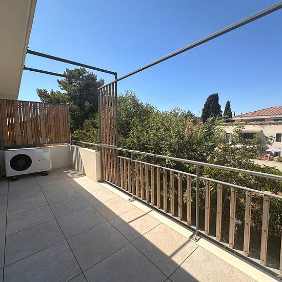 Dans résidence standing neuve, appartement de type 2 comprenant une entrée, séjour avec cuisine ouverte équipée, chambre, salle d'eau avec wc, grande terrasse, calme, climatisation.