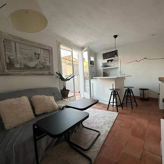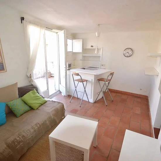 À deux pas de la rue d'Italie et du Cour Mirabeau, au calme, au dernier étage d'un petit immeuble, charmant T2 meublé de 28,51m2 avec une belle terrasse de 10m2, salon, cuisine américaine équipée, une chambre donnant sur la salle de bains. Lumineux.