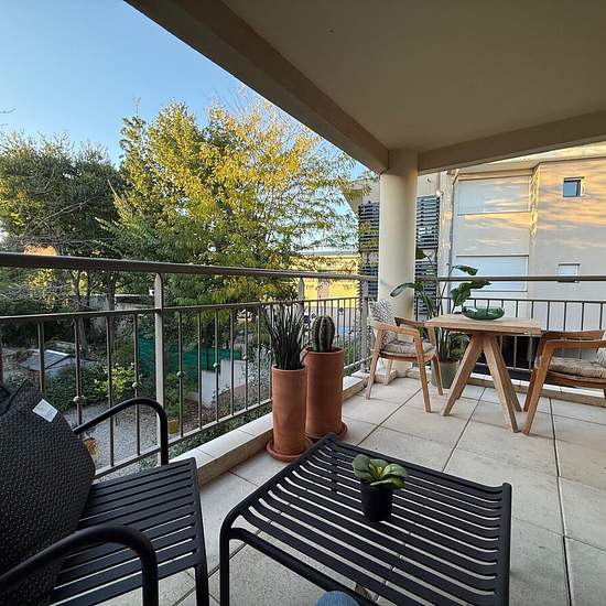 À louer, l'agence r immo vous propose un spacieux t2 de 46.82 m² avec terrasse et deux stationnements, situé à aix-en-provence proche de la clinique axium. l'appartement a été intégralement rénové, et est composé d'un hall d'entrée, d'un séjour avec cuisine ouverte entièrement équipée avec un ilot central, une sde moderne avec sèche serviette et une grande chambre de 14.26 m² avec un placard de rangement. vous bénéficierez également d'une terrasse meublée et ensolleillée, ainsi que deux places de stationnements numérotées. loyer cc : 1 200.0...