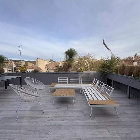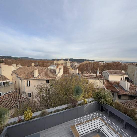 En plein coeur d'Aix en Provence, nous vous proposons à la location ce charmant duplex au 6e et dernier étage avec ascenseur, exposé plein sud, meublé, composé d'un séjour donnant sur une cuisine ouverte très bien équipée et une terrasse de 45m2, un toilette invité, de nombreux placards, une salle de douche et un grand dressing. À l'étage une belle suite parentale ouverte sur la salle de bains et un toilette donnant sur une autre terrasse de 22m2. Très rare. Lumieux. Disponible au 15 février.