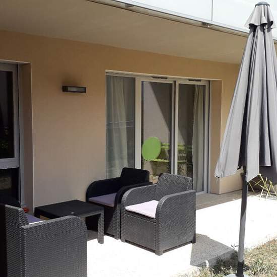 Aix les bains - t2 meublé de 39.39 m² dans une résidence récente, au calme, composé d'une cuisine aménagée équipée ouverte sur séjour, une chambre, une salle de bains, un wc. Une terrasse et un jardin exposé sud. Un garage. Disponible le 19 / 12 / 2025. Loyer cc 774.27euros. Fa 512.07 euros.