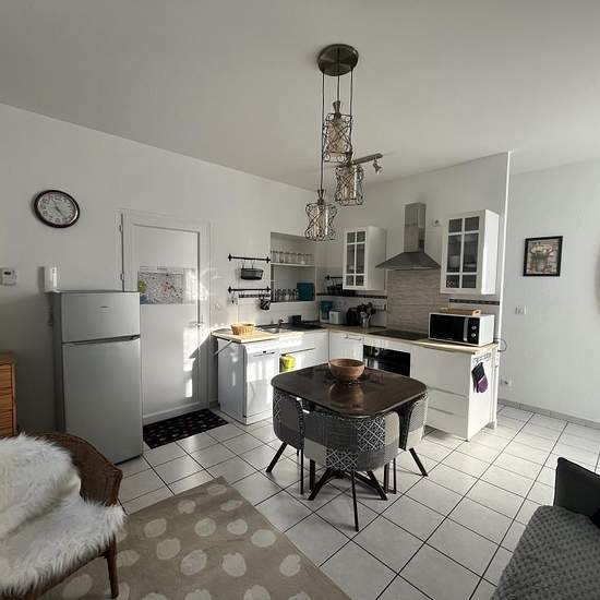 A LOUER TYPE 2 MEUBLÉ - 22 BOULEVARD BERTHOLLET à AIX LES BAINS Ce TYPE 2 meublé de 35m² se situe au rez-de-chaussée d'un petit immeuble situé sur les 1ères hauteurs d'Aix les Bains. Il se compose ; d'une cuisine équipée (lave-vaisselle, plaque induction, réfrigérateur-congélateur, micro-ondes, four) ouverte sur le séjour, le séjour de 17m² ouvre sur une terrasse d'environ 6m² exposée Sud, un dégagement avec placard, une chambre (armoire dressing et lit basculant avec rangement), une salle d'eau avec WC et lave-linge. Une cave et un parking ...