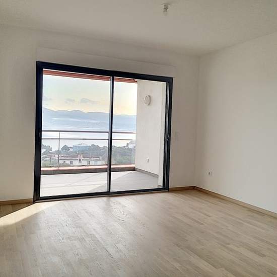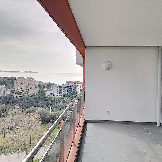 MAX IMMOBILIER propose à la location, secteur Aspretto, dans le programme neuf du Génovèse, à proche de la plage des commerces et des écoles : un beau F2 de standing de 45.05m² en 4ème étage , avec une belle vue mer et ville.Terrasse de 15m²- Prestations de qualité.Un box en sous-sol : 80 euros en sup PRESTATIONS DU F2 GENOVESE : Parquet Carrelage Peinture Double vitrage : grande baie coulissante dans la pièce principale Volet roulant électrique Garde-corps Porte d'entrée iso phonique Placards Sasque sur meuble avec miroir et bandeau lumineu...
