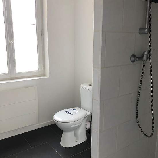 Appartement de 29.38m² , situé au premier étage d'un immeuble de deux étages, loué non meublé, comprenant une pièce de vie avec un coin cuisine meublée et équipée, d'une plaque de cuisson, d'un réfrigérateur et d'un four micro-ondes, ainsi qu'une salle d'eau comprenant une douche, des WC et un lavabo. Ainsi qu'une pièce complémentaire de 6,9 m² qui se situe en dehors de la pièce principale, sur le palier d'en face. Chauffage collectif électrique Production d'eau chaude individuelle électrique Le loyer comprend la consommation d'eau, d'électr...