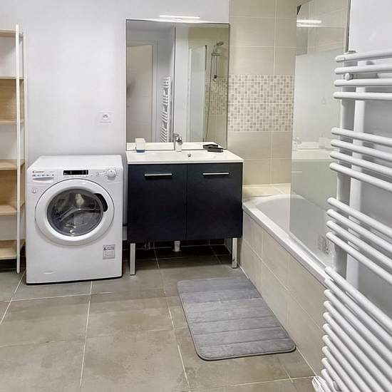 Appartement de 43 m² à louer sur Annemasse Superbe appartement dans une nouvelle résidence a 2 mn du centre d'Annemasse, proche de la sortie de l'Autoroute A41. Il est aussi situé a 10 mn a pied de la station de métro du parc de Montessuit d'Annemasse pour un trajet en Tram a 20mn a destination de la Gare Cornavain a Genève. L'appartement se situe au RDC d'un bâtiment neuf avec accès en Digicode. Il est composé de : - Une entrée avec placard et porte chaussures. - Une chambre a coucher avec un grand lit et placard et volets roulants electriq...