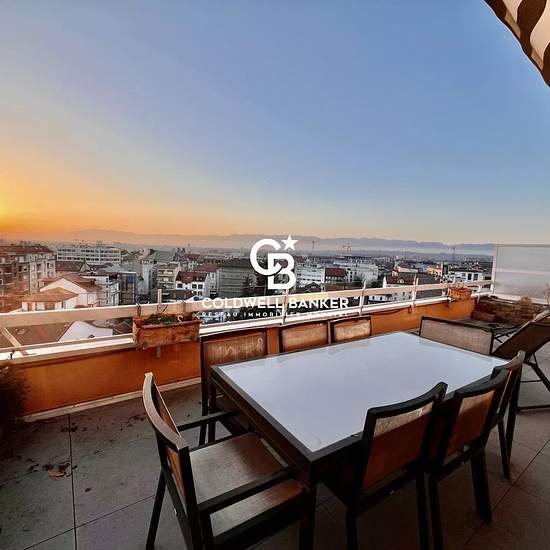 Nous vous proposons à la location un magnifique appartement de 84 m2 au 8ème et dernier étage. Situé au Centre d'Annemasse, vous pourrez profiter de la proximité du tram et de la gare tout en profitant d'une très belle terrasse exposée Sud-Ouest avec vue dégagée. L'appartement est loué meublé et comprend : une entrée, un salon, une salle à manger séparée, une cuisine entièrement équipée séparée, une chambre avec salle de bains (baignoire et douche) et un dressing/bureau. De plus, vous trouverez en annexe une place de parking extérieure. Les ...