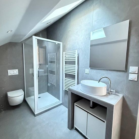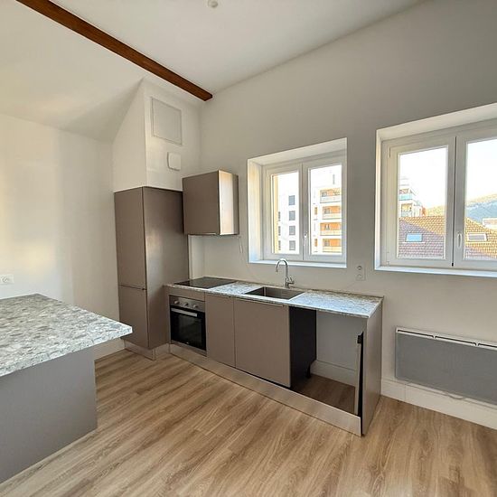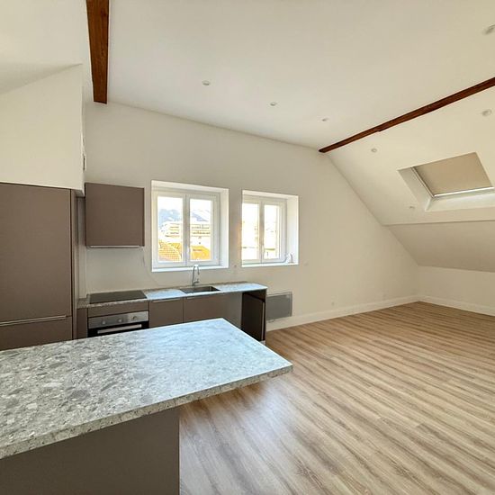 ANNEMASSE - Centre ville proche rond point de l'étoile, appartement 2 pièces à louer au dernier étage sans ascenseur. Comprenant une cuisine équipée ouverte sur le salon, une salle de douche avec wc, et une chambre. Disponible début mars (Ref : 30057) Afin de pouvoir étudier votre demande au plus vite, nous vous invitons à constituer dès à présent votre dossier de location et à nous l'envoyer à l'adresse-mail EMAIL Vous trouverez la liste des pièces à fournir en suivant ce lien : Loyer mensuel : 950? Provision pour charges mensuelle avec ré...