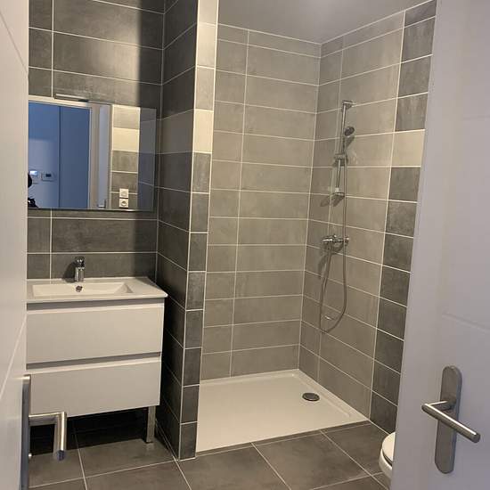 Appartement T2 d'environ 49 m² au 1er étage d'un immeuble récent. Ce logement est composé d'un hall d'entrée avec placard mural, une cuisine équipée ouverte sur le séjour avec baie vitrée donnant sur une terrasse de 14 m², une chambre ainsi qu'une salle d'eau avec WC. Grand garage - Une place de Stationnement - Terrasse - Chauffage individuel au gaz de ville et climatisation. L'immeuble est équipé d'un portail automatique de rue, d 'un visiophone ainsi que d'un ascenseur. Loyer mensuel : 600€ dont 65 euros de provision sur charges (charges i...