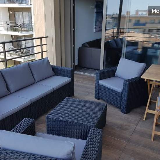 New one bedroom flat with sea view and terrace near Antibes, with swimming pool, private parking, air conditioning and all comfort. Good living space with a bedroom, a separate living room and a spacious terrace. Very good location and close to the beach. This 1 bedroom flat is located in a brand new apartment complex, ideally situated near the beach. Quiet, comfortable and fully equipped. Air conditioning, internet and WiFi, washing machine, dishwasher, and all comforts included. High quality furniture, artistic interior decoration with a l...