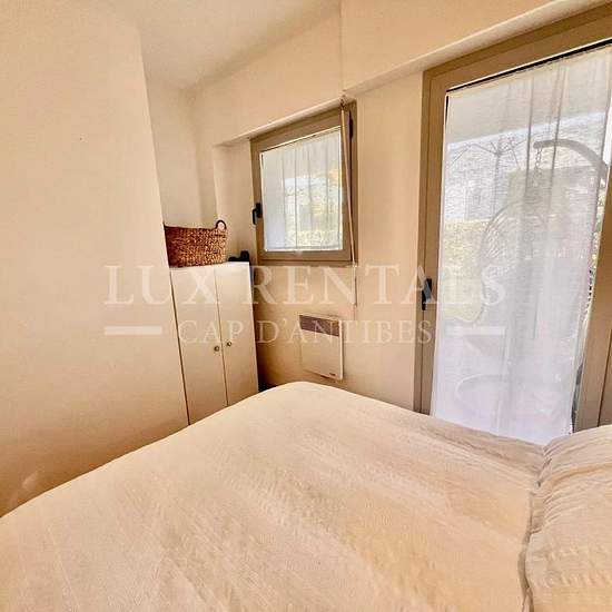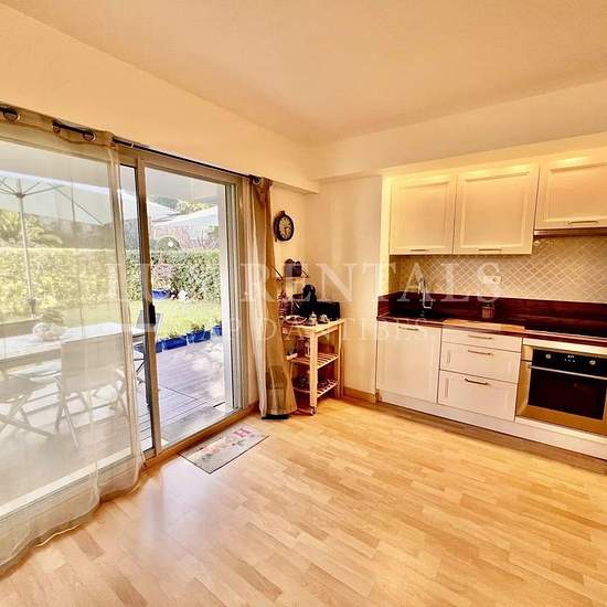 Cet appartement au rez-de-jardin est un 2 pièces de 40m², situé à proximité des plages de la Garoupe. Il comprend un salon avec une cuisine ouverte, une chambre avec accès au jardin, une salle de douche/toilettes et un espace de rangement avec une machine à laver. Jardin, Parking en sous sol, Climatisation et internet.
