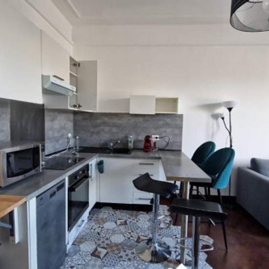 Emplacement idéal : à 2 min de la gare de Juan-les-Pins, proche bus (écoles, Sophia Antipolis, Antibes centre), commerces, restaurants et plages. Description du logement : Séjour lumineux avec canapé, table et TV Cuisine indépendante équipée (plaques, four, frigo, vaisselle) Chambre spacieuse avec lit double + grands rangements Bureau avec lit 1 personne Salle de bain avec douche + WC séparés Eau, électricité, chauffage et Wi-Fi inclus Résidence calme et sécurisée Updated on 22/12/2025 Mise à jour le 22/12/2025