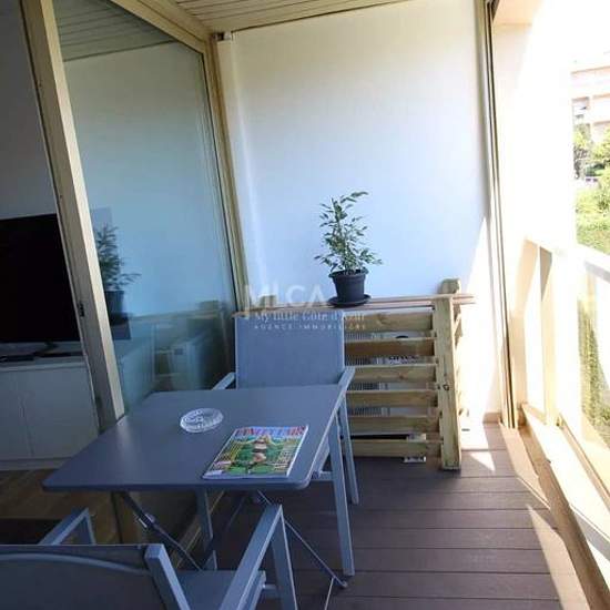 Dans résidence avec gardienne, au calme absolu, proche plages et commerces, entièrement refait à neuf: entrée avec placards, séjour avec cuisine équipée ouverte, 1 chambre, 1 toilette indépendant avec bidet, 1 salle de douches, terrasse, le tout climatisé, internet et garage Couchages pour 2 personnes Prix Juillet : 1 000 € / semaine prix Aout : 1 250 € / semaine