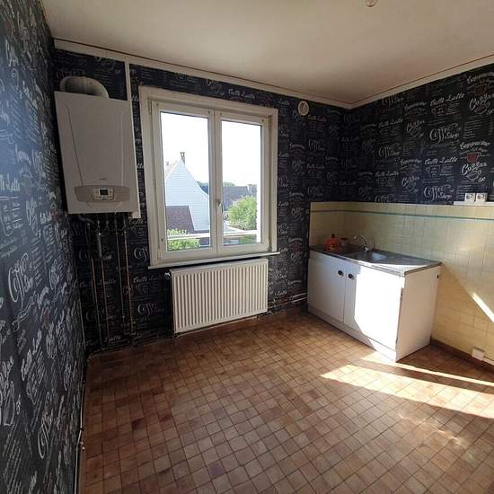 Appartement au 1er étage comprenant un séjour, une cuisine non équipée, une salle d'eau, wc et une chambre, chauffage au gaz de ville. Un garage. PAS DE JARDIN. Loyer : 550€ Hors charges. Caution : 550€ Honoraires : 550€ Les informations sur les risques naturels auxquels ce bien est exposé sont disponibles sur le site Géorisques :