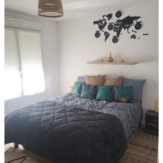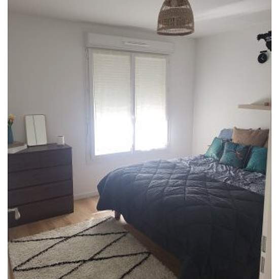 Appartement T2 44m2 dans résidence livrée en janvier 2023. L'appartement est entièrement équipé et décoré. La cuisine aménagée est ouverte sur l'espace à vivre et contient plaques, four, micro-onde, frigo et des placards de rangement. L'espace à vivre douillet et soigneusement décoré avec une bibliothèque et un rétro-projecteur pour des soirées cinéma. La chambre est équipée d'un lit Queen size, d'une commode et d'une penderie, elle intègre un espace bureau. La salle de bain est équipée d'une baignoire, d'un lave-linge-sèche-linge, d'un sèch...