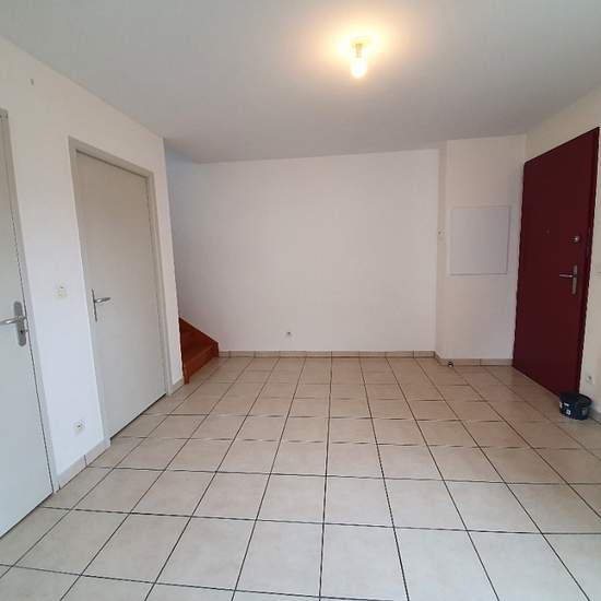 Appartement en duplex proche centre ville comprenant séjour, coin cuisine, salle de bains, cellier, 1 chambre à l'étage avec terrasse.