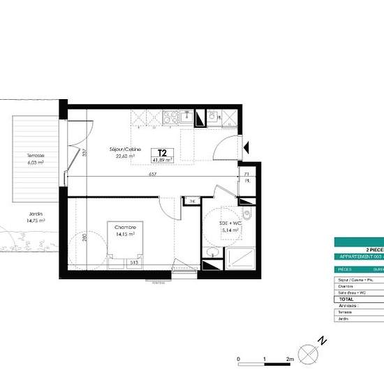 Une situation idéale à 30 min de la Métropole de Bordeaux et de l'aéroport de Mérignac, à proximité d'Andernos, Audenge fait partie des communes du Parc naturel des Landes de Gascogne qui vous séduira par sa douceur de vivre Nous vous proposons cet agréable T2 situé au rez-de-jardin de cette résidence récente. Il est composé d'un séjour avec cuisine équipée ( Meuble haut et bas, évier, hotte, plaque vitrocéramique 2 feux et un frigo table top) s'ouvrant sur une terrasse de 6.03m² avec son jardin de 14.75m², d'une chambre de 14m² et d'une sal...