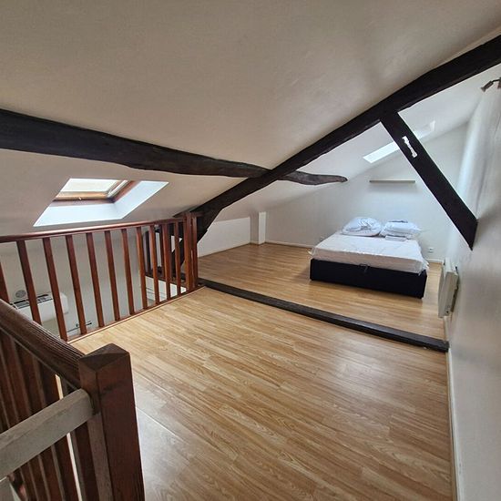 EXCLUSIVITE L'AGENCE AUXERROISE IMMOBILIER. Au coeur du centre-ville d'Auxerre, venez découvrir cet appartement en duplex, entièrement meublé, situé au premier étage d'un petit immeuble, il se compose : d'une grande pièce de vie avec cuisine aménagée et équipée (plaque de cuisson, réfrigérateur, micro-onde, machine à laver), d'une salle d'eau, d'un wc, et d'un grand espace nuit en mezzanine. Chauffage individuel électrique et climatisation réversible - Disponible de suite.