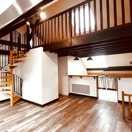 À LOUER Appartement T2 duplex avec combles aménagés Avallon (89200) L'agence Expertimo vous propose à la location cet appartement non meublé d'environ 45 m2, situé au 2? étage de la Résidence du Chapeau-Rouge, 3 rue Pasteur. Description du logement Le bien comprend : Une entrée avec un visiophone. Une cuisine aménagée (placards bas, hotte) ouverte sur la pièce de vie. Un séjour cathédrale avec deux velux. Une chambre de plain - pied avec un vélux. Une salle d'eau carrelée avec un rangement et un porte -serviettes électrique chauffant. WC sép...