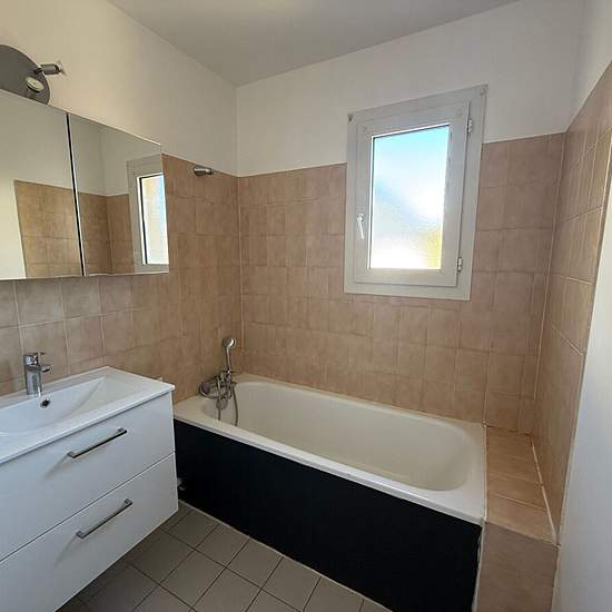 Proche de la mairie et centre dans petite résidence - Joli 2 pièces de 45m² comprenant : Entrée - Séjour - cuisine - une chambre - Salle de bains - WC - parking S/Sol - cave - Libre à la location .