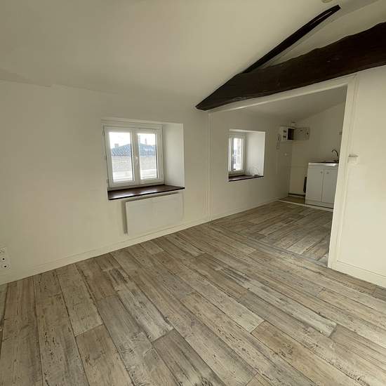 BARBEZIEUX Centre (16) - Appartement de type T2 d'environ 30 m2 situé au 2ème étage comprenant une pièce séjour avec kitchenettre, une chambre, une salle d'eau avec wc. Chauffage électrique. Ensemble rénové. Commerces et services à pied.