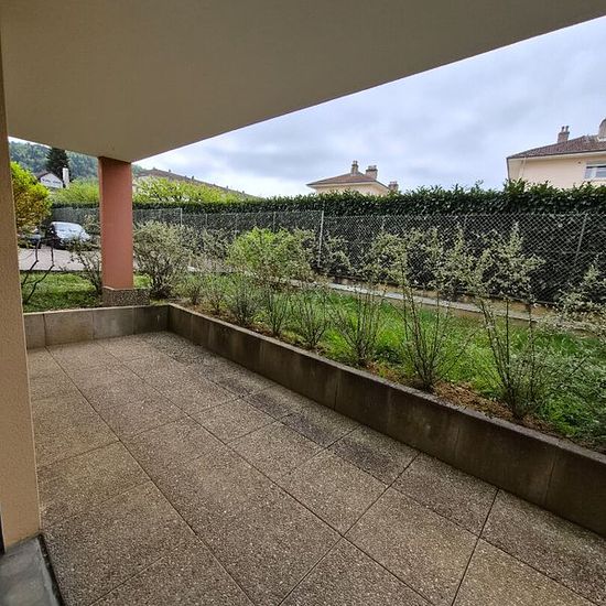 REF : 5396 - T2 au calme, rez-de-jardin avec Garage, 67 A rue de Dole, 50 m², sans vis à vis, proche ttes commodités, entrée avec placard équipé, cuisine séparée équipée, séjour avec gde terrasse de 18 m², 1 chambre, cave, chauffage ind élec, LIBRE