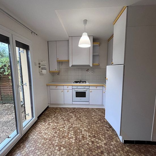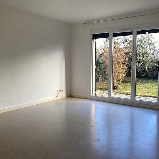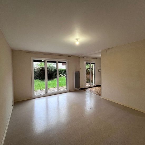 REF : 7911 T2 en Rez-de-Jardin, situé 84E Rue de Vesoul, entrée et dégagement avec placard équipé, séjour avec cuisine semi-ouverte équipée (meubles, plaque de cuisson 4 feux, four, hotte, frigo encastré), une chambre, salle de bains, WC séparé, Terrasse et jardin avec store ban électrique, chauffage individuel électrique, cumulus, volets roulants électriques et volets bois, Fibre, Cave, Garage en sous/sol protégé LIBRE
