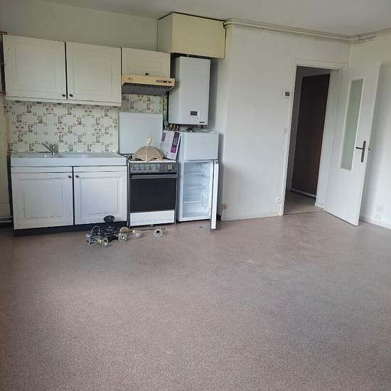 Type 2 de 44 m2 offrant : entrée avec placard, séjour ouvert sur cuisine, salle de douche, WC séparé, une chambre, cave et parking. Chauffage gaz loyer 550 + 35 euros de charges soit 585 euros dispo appartement en cours de rénovation ( sol et cuisine).