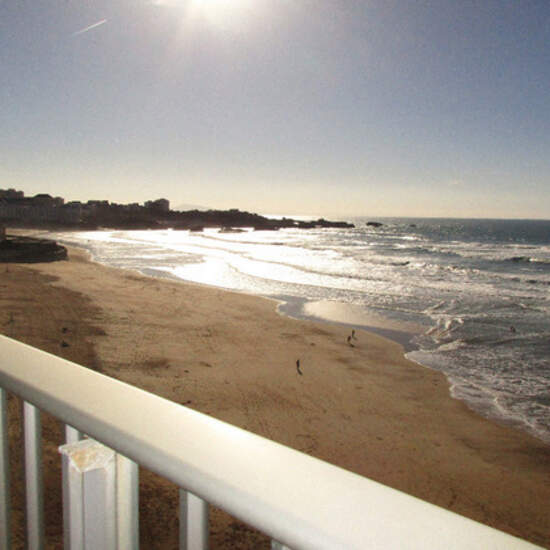 "VUE MER 1ÈRE LIGNE" T2 LOCATION A L'ANNÉE, 60M2; Face à l'Océan Spacieux T2 comprenant: Entrée + Cellier, Séjour + Cheminée, donnant sur une Loggia exposée Ouest avec double Baies Vitrées, Cuisine aménagée accès sur la loggia, Chambre et son placard, Salle d'eau, WC.Chauffage individuel Gaz. Situé au 5ème étage, dans une Résidence avec Gardien, avec un Accès direct à la Plage. Loyer mensuel: 997 euros + 140 euros charges avec régularisation annuelle. Honoraires Agence Locataire: 780 euros TTC AIGDI BIARRITZ IMMOBILIER TEL: