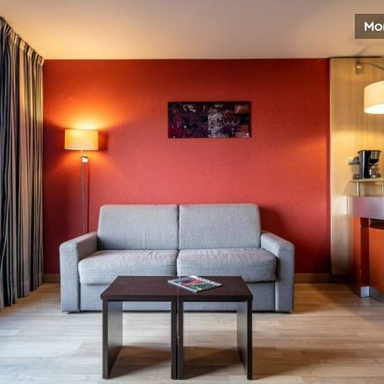 Furnished 36 m2 flat with double bed (160*200) or 2 single beds on request, suitable for 4 people, fully-equipped kitchenette (microwave, cooker hood, fridge, small dishwasher) bathroom with shower and bath, and separate toilet. The residence is brand new and located near Blagnac airport. The residence also offers additional services payable on site: - Breakfast (16.90€ / person / day) - Pets: €5/day - Swimming pool, spa and fitness centre Housekeeping can be added at an extra cost of €90/month, payable at reception. In the case of seasonal ...